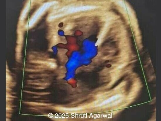 - Image 9: Middle cerebral artery peak systolic velocity >1.5MOM suggesting fetal anemia