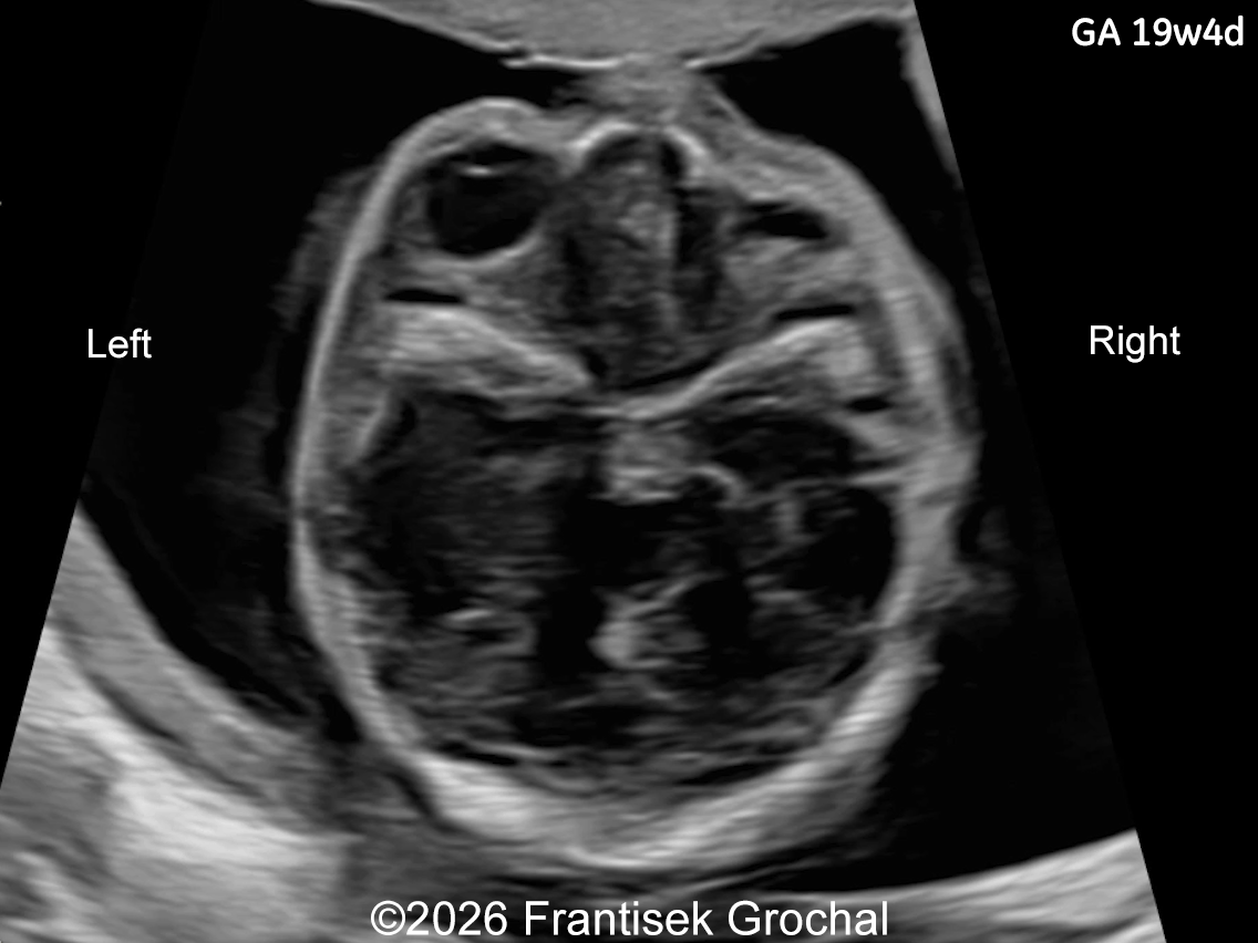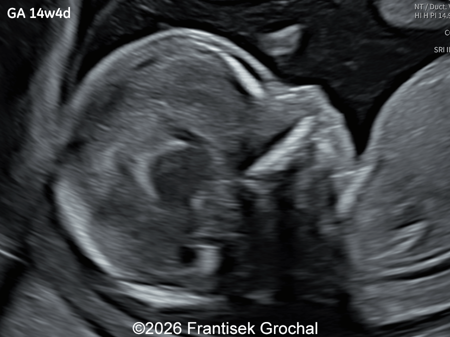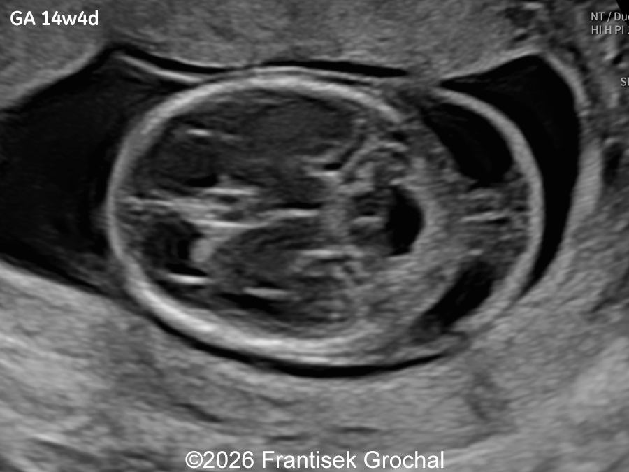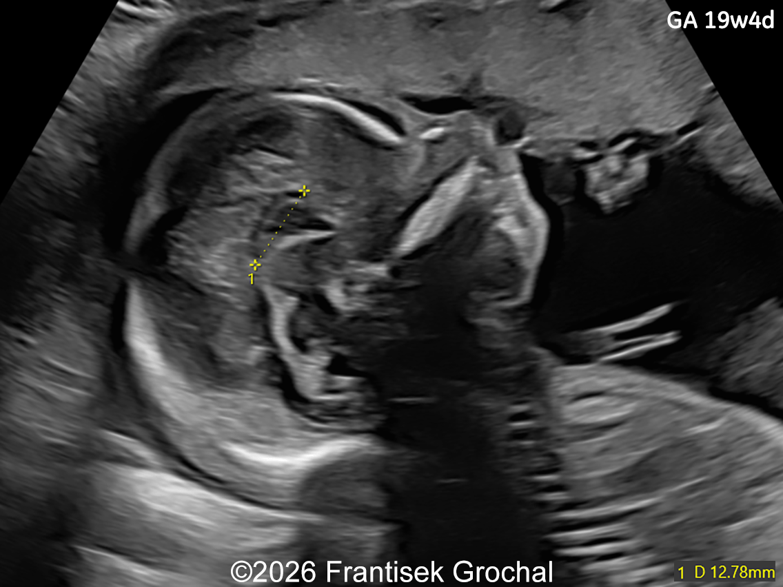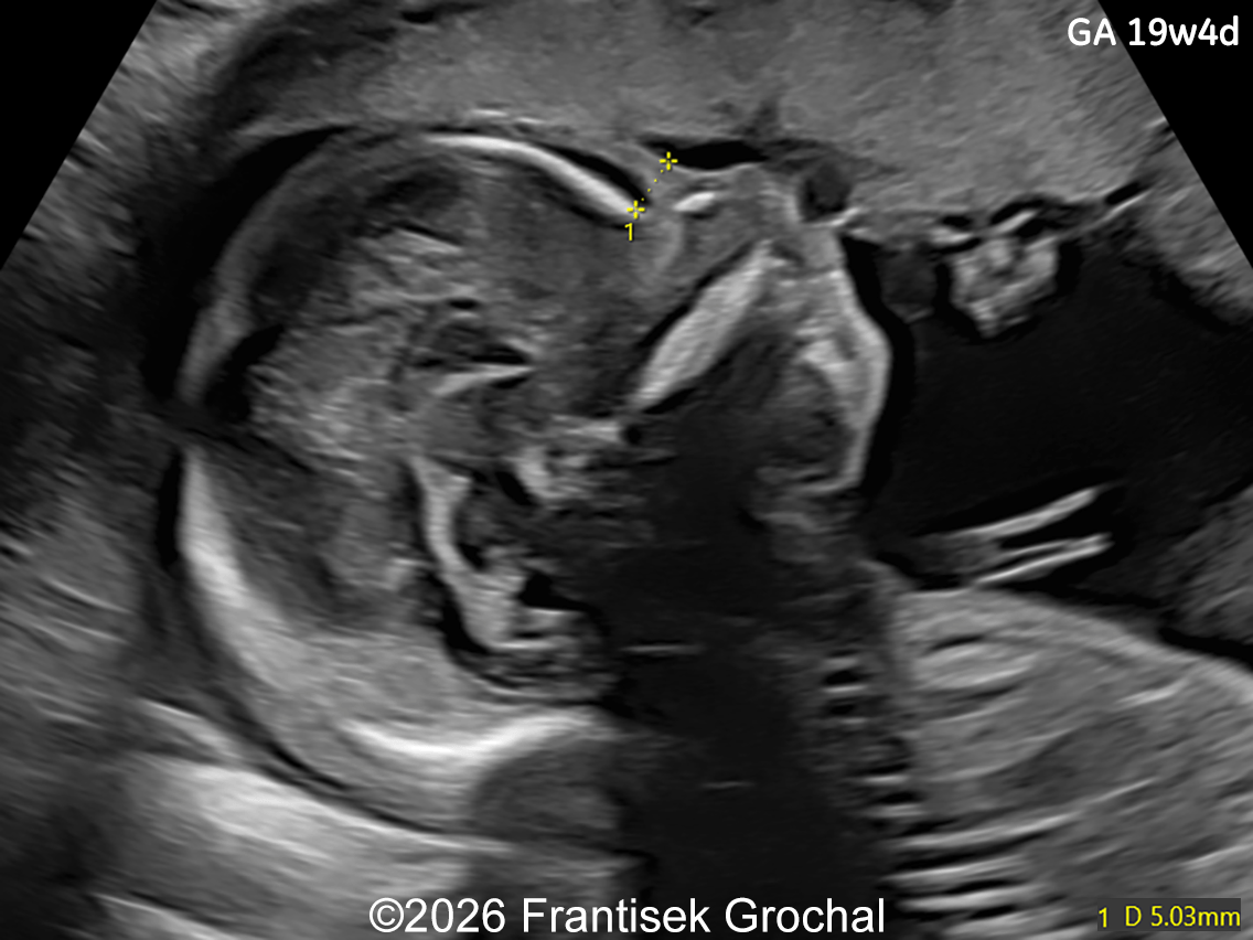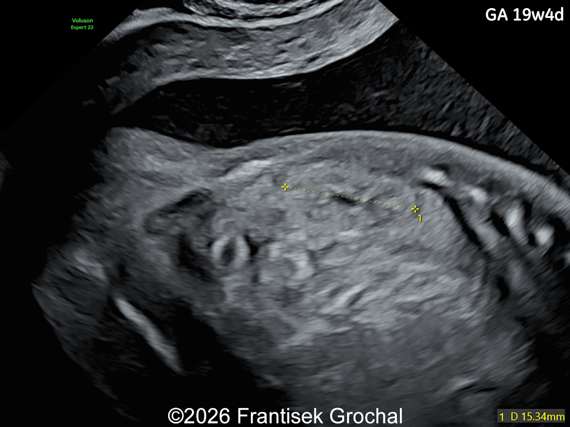 A 30-year-old primigravida presented to our outpatient clinic for ultrasound examinations at 14 and subsequently at 19 weeks of gestation. In a male fetus, the following findings were identified:
